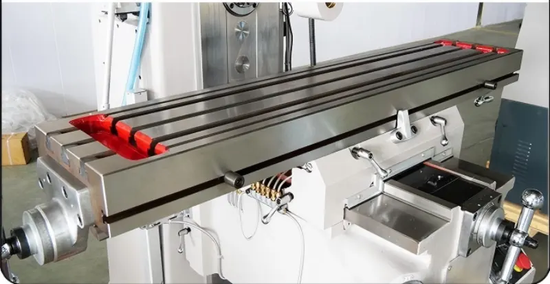 طريقة توجيه المستطيل، استقرار أفضل، سهولة التغيير من الطحن الرأسي إلى الطحن الأفقي، يمكن تغذية طاولة العمل تلقائيًا في المحور X، ومجهزة بوحدة عكس سريعة لتحقيق كفاءة عالية في العمل
