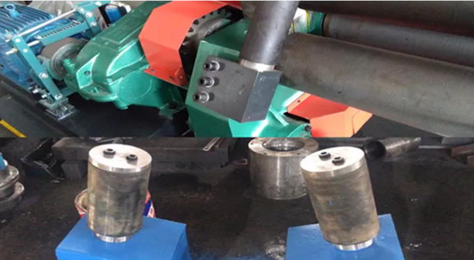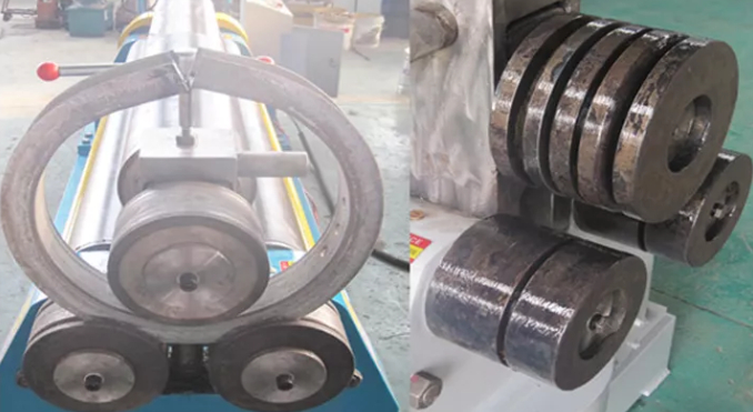 El dispositivo de descarga se utiliza una vez terminado el cilindro redondo. Antes de abandonar el retén del cojinete izquierdo, eleve el rodillo superior a la altura estándar y deténgalo con la varilla de equilibrio en su parte inferior.